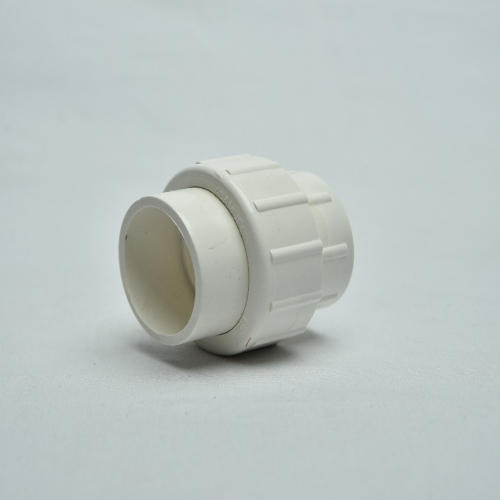 This is a PVC union fitting designed to connect two sections of PVC pipe, allowing easy disconnection and maintenance without cutting the pipe. It features a threaded central nut that securely joins both ends, ensuring a leak-proof and durable connection. Made from high-quality polyvinyl chloride, it is resistant to corrosion, chemicals, and pressure, making it ideal for plumbing, irrigation, and water treatment systems. Perfect for applications where frequent assembly and disassembly are required.