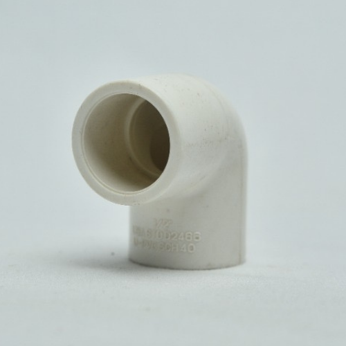 This is a 90-degree PVC elbow fitting used to connect two sections of PVC pipe at a right angle. Made from durable polyvinyl chloride, it is corrosion-resistant, lightweight, and easy to install. Commonly used in plumbing, irrigation, and water distribution systems, the elbow ensures smooth directional changes in the piping layout while maintaining a secure, leak-free connection. Ideal for residential, commercial, and industrial applications.