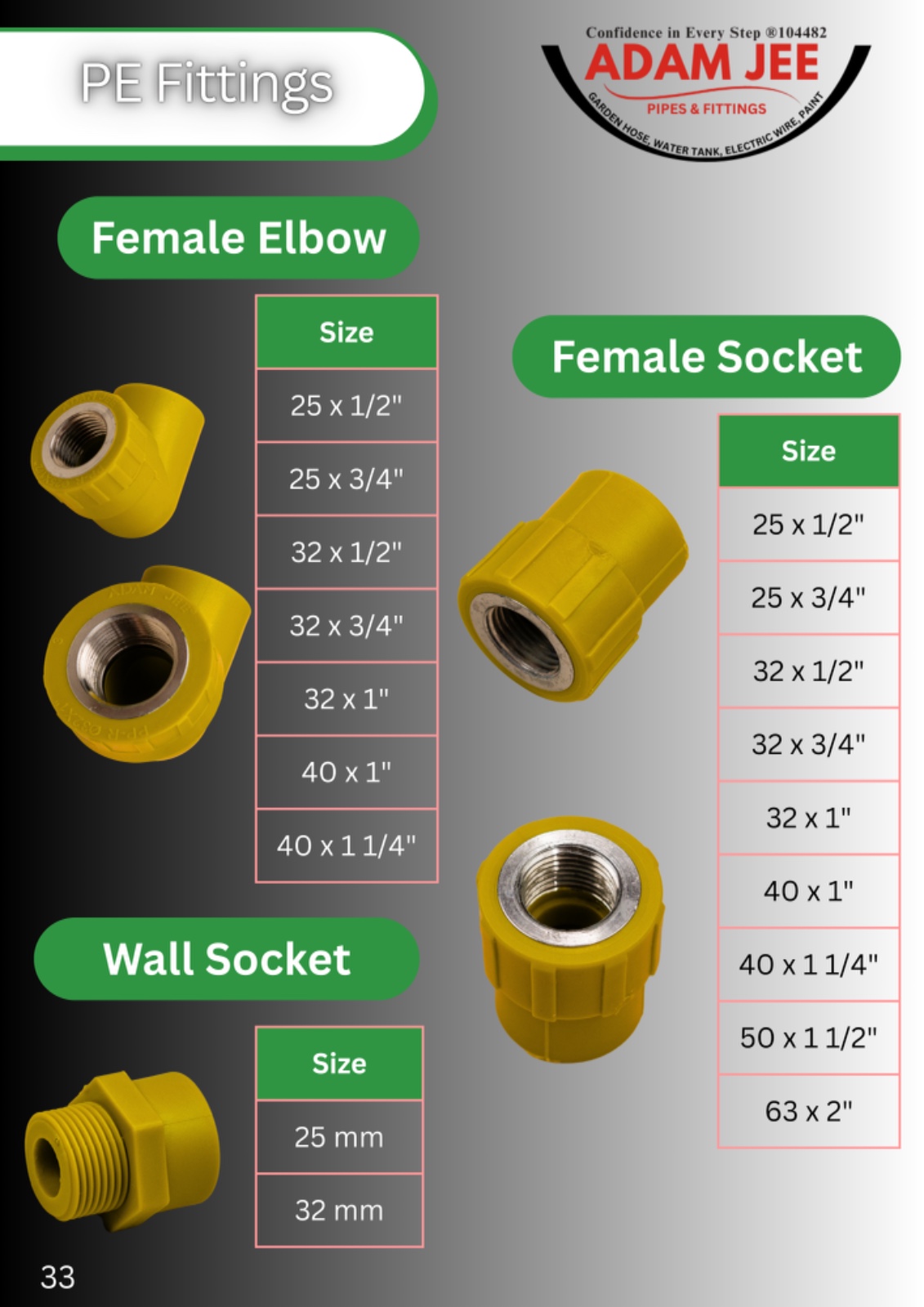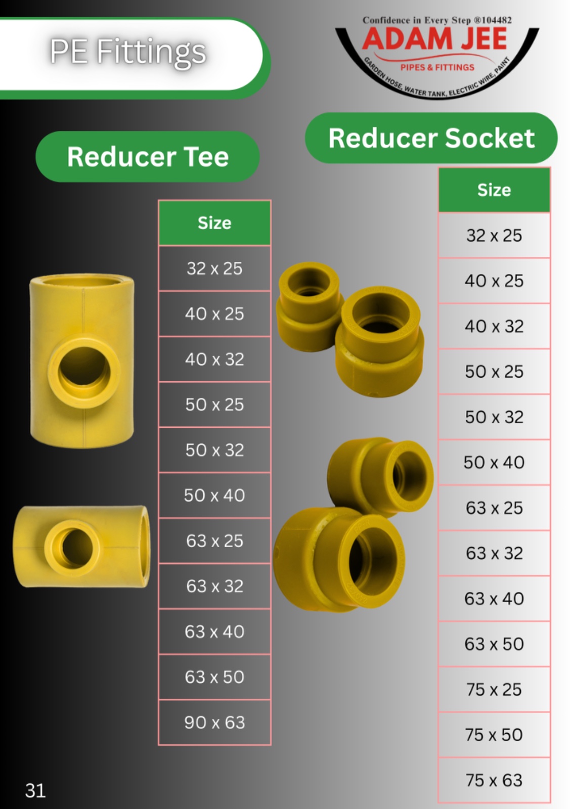 Adamjee PE Fittings are manufactured in compliance with the regulatory requirements of Pakistan Standards and Quality Control Authority (PSQCA) ensuring quality, safety, and reliable performance for use across Pakistan.